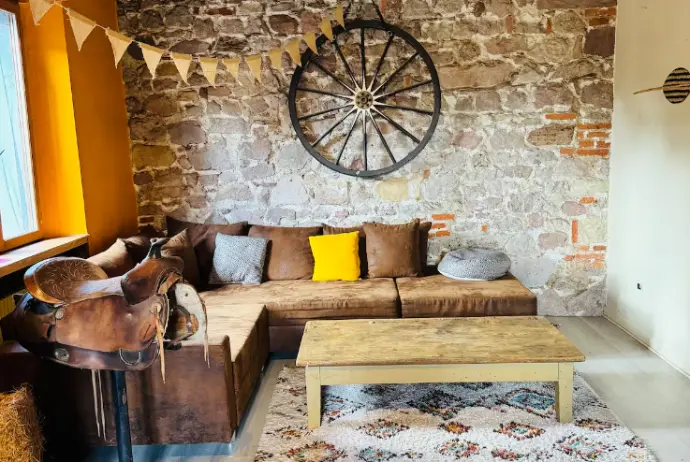 Installez-vous dans notre appartement au cœur d'une ferme équestre, décoré dans une ambiance western chaleureuse.